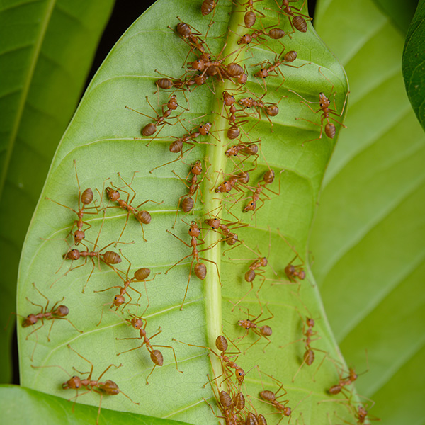 - Einige Ameisenarten pflegen Blattläuse an Pflanzen. Diese sondern den süssen Honigtau ab, welcher von den Ameisen «gemolken» und als Nahrung verwendet wird. Als «Gegenleistung» beschützen die Ameisen die Blattläuse vor feindlichen Insekten.