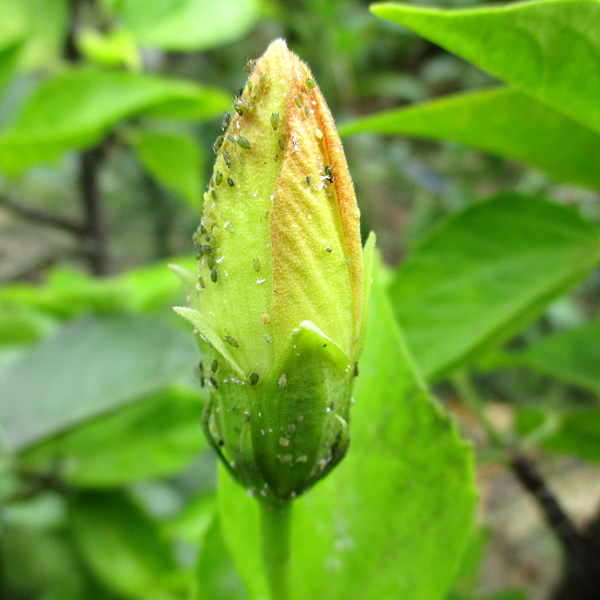 - Der Fransenflügler Befall zeigt sich an kleinen schwarzen Kothaufen und Saugstellen mit nadelstichartiger gelblicher Sprenkelung welche sich durch Oxidation später silbrig weiss verfärbt. Kaum mit blossem Auge zu erkennen sind die länglichen cremefarbenen Larven oder die erwachsenen Tiere an der Pflanze.