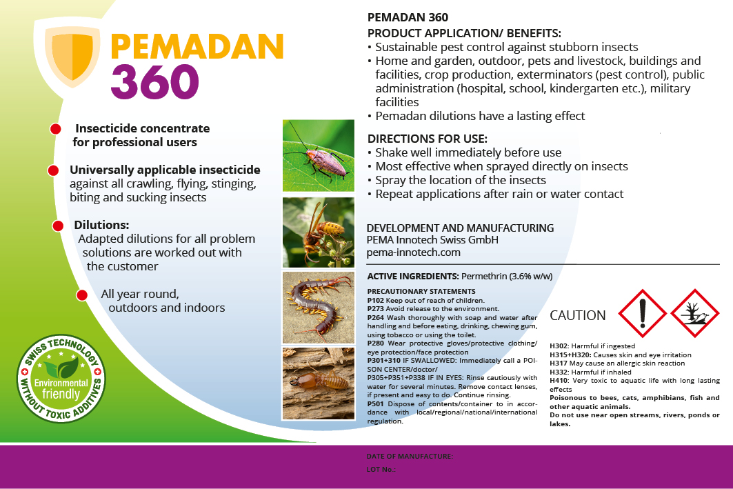Universally applicable insecticide against all crawling, flying, stinging, biting and sucking insects.