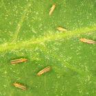 - Der Fransenflügler Befall zeigt sich an kleinen schwarzen Kothaufen und Saugstellen mit nadelstichartiger gelblicher Sprenkelung welche sich durch Oxidation später silbrig weiss verfärbt. Kaum mit blossem Auge zu erkennen sind die länglichen cremefarbenen Larven oder die erwachsenen Tiere an der Pflanze.